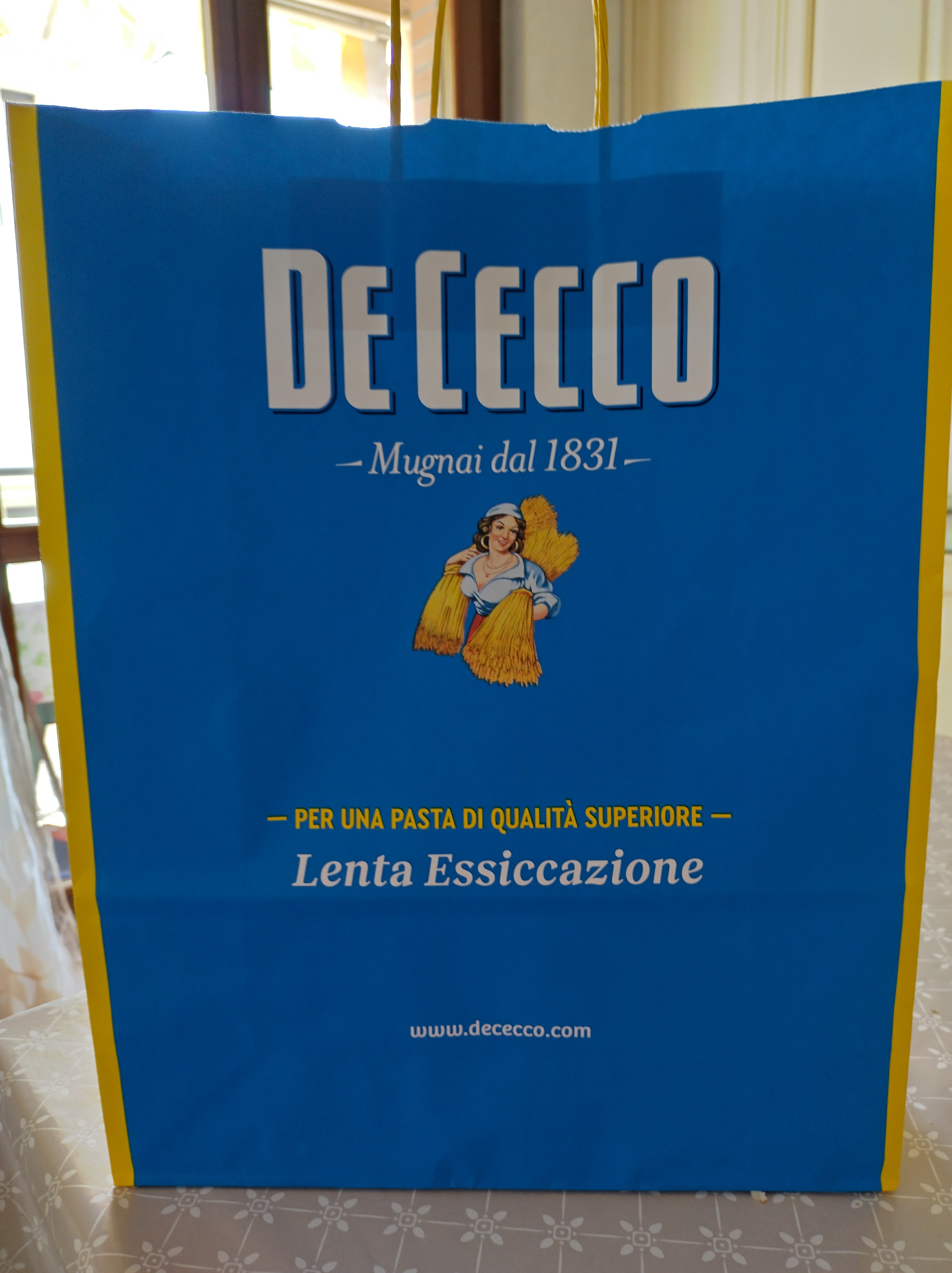 In 1889 heeft Filippo De Cecco een machine ontworpen voor het langzaam drogen van de pasta. Een procedé dat nu nog steeds wordt toegepast. Het droogproces duurt voor sommige pasta's wel 40 uur. Ik heb eigenlijk geen idee of dat langzaam is. Waarschijnlijk wel, want De Cecco is er apetrots op dat ze het zo langzaam doen. Lenta essiccazione = langzame droging. Overigens heb ik dit van de webzijde van De Cecco. Je kunt hier ook voor Nederland kiezen bij 'Scegli il paese' om het in het nederlands te lezen.